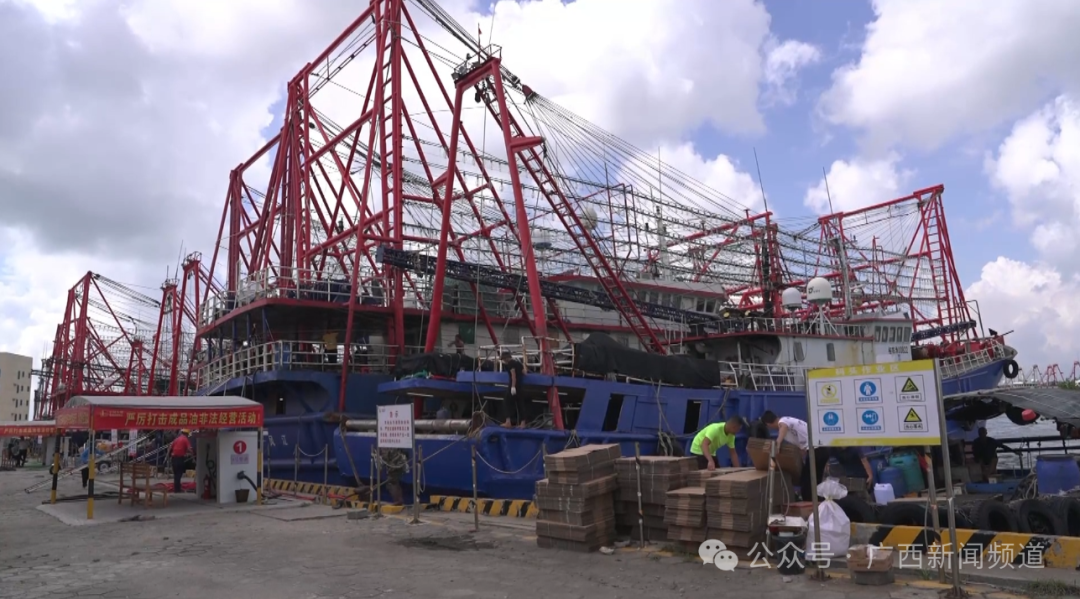 现在,北海的渔民们正紧锣密鼓地进行最终的开海准备工作,在我国石化广西北海石油地角码头,一排渔船正在等候加油出海作业,渔民们忙着加水、检修渔船、添加日常生活用品。