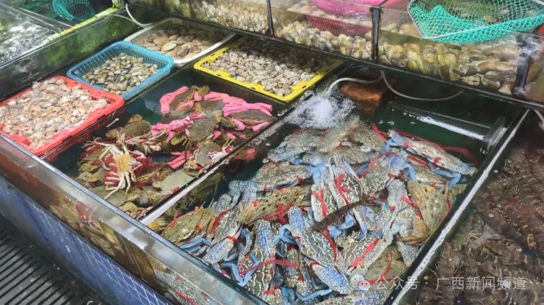 今天上午,记者来到南宁淡村海鲜城看到,得益于近年来广西沿海地区深耕海洋渔业“蓝色粮仓”,即便是休渔期,这儿仍旧有许多品种的海鲜出售。其间,斑节虾和石斑鱼,在休渔期里最受欢迎。
